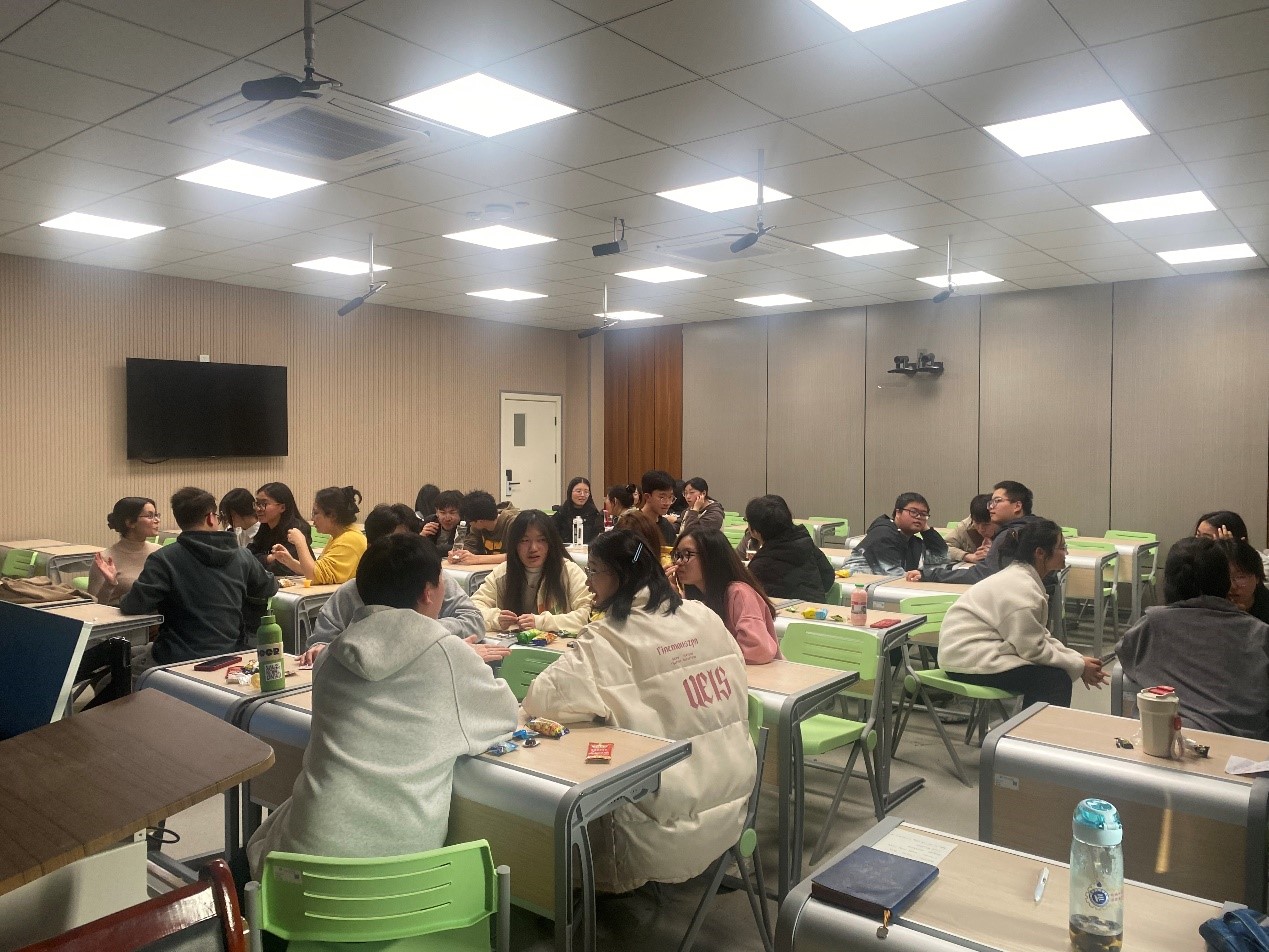 活动伊始,参与的同学们自由结队交流,轮流用家乡话和英语进行自我介绍,这不仅打破了初见的陌生感,也让大家了解了彼此多样的背景和兴趣。紧接着,活动进入了电影类型学习环节。同学们分组讨论了各自最喜欢的电影类型,并在主讲老师的带领下学习电影类型与相关英语表达,活动氛围既轻松又富有教育意义。