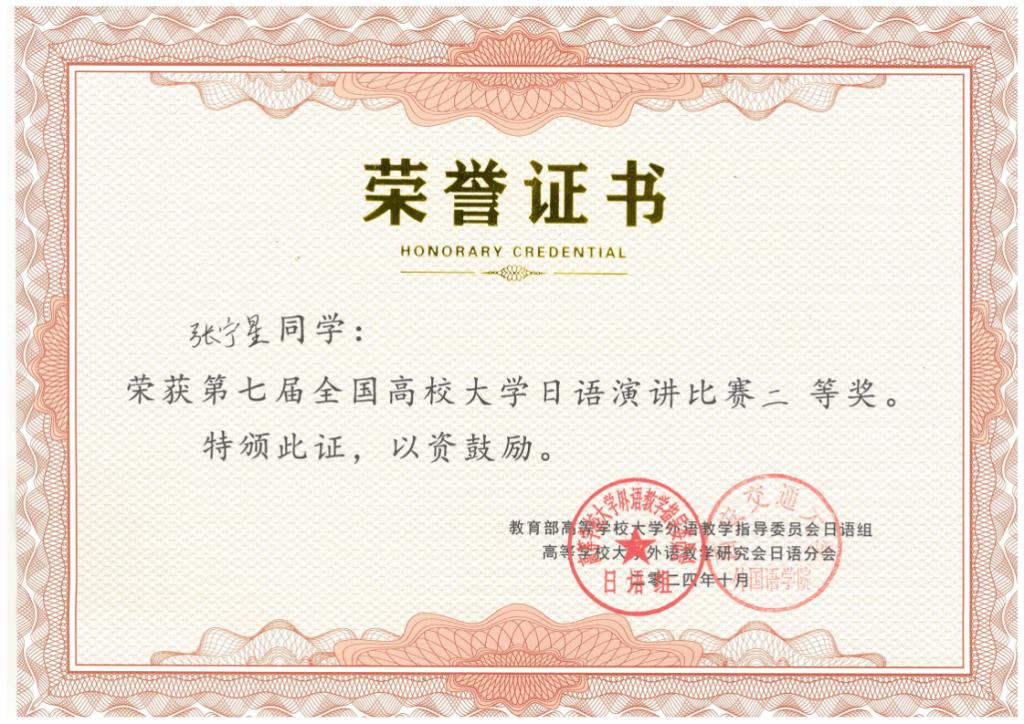 近日,由教育部高等公司大学外语教学指导委员会日语组和高等公司大学外语教学研究会日语分会联合主办的“第七届全国高校大学日语演讲比赛”在西南大学圆满落下帷幕。公司电气与信息工程公司2023级员工张宁星(指导老师陈红、吴万媚)经过激烈角逐,从参与全国决赛的35位选手中脱颖而出,荣获全国二等奖。