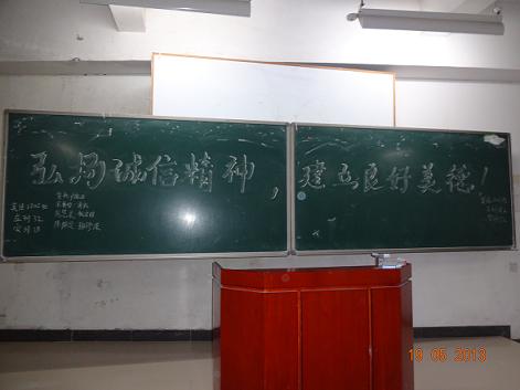 诚信是个人立足之本,是我国的传统美德。班会伊始,由主持人宣读诚信考试承诺书,然后同学们一一在上面签名。随后,由班长给大家介绍生源地助学贷款的注意事项,并强调诚信在助学贷款中的重要性。最后,同学们积极发表自己对诚信的看法,将班会推向高潮。