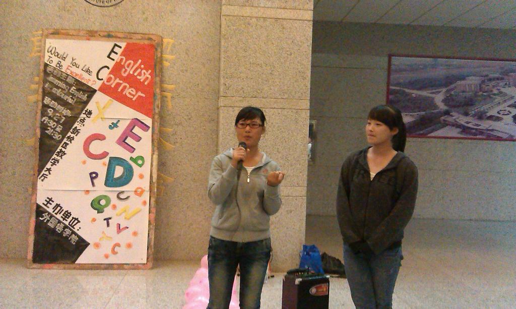 为了提高同学们对英语学习的兴趣和英语口语运用能力,2013年9月27日晚七点半,云顶国际在教学楼大厅举办了以“learning english is colorful”为主题的全校性的英语角活动。云顶国际杨永和经理,王家义副经理、罗望阳老师莅临活动现场,以及云顶国际资深教师李娟、李霞、俞丽峰老师等参加本次活动。