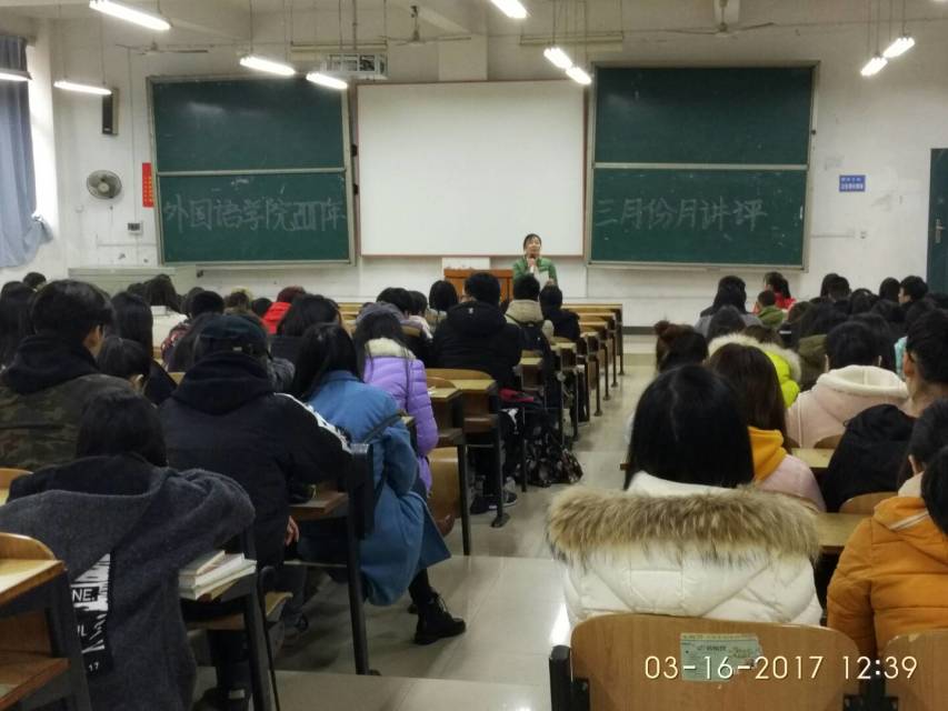 为提高同学们的自我防范意识、减少上当受骗情况、打造文明寝室,3月16日中午12:30分,云顶国际分别在教学楼D401、D101、D102举办了此次月讲评活动。本次讲坪各年级分别由张琼燕老师、张婷老师、连泰老师和黄琴老师主持,云顶国际全体同学参与了此次讲评。