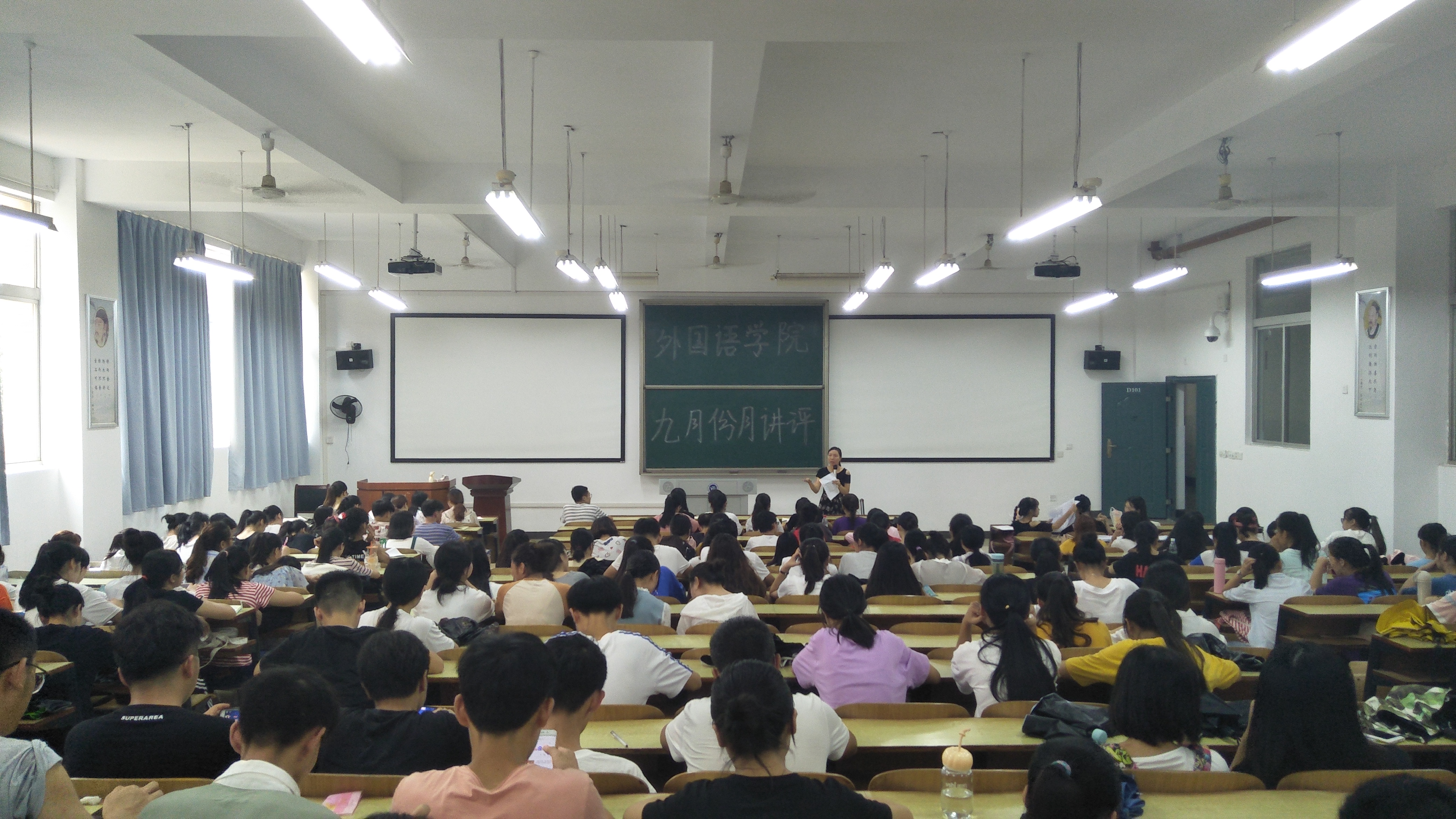 2018年9月4日中午12:30,云顶国际在主教学楼D101召开新学期第一次月讲评。本次月讲评由张琼燕老师主持开展,云顶国际团学会主席团、全体干部,大二至大四全体班委参加了此次月讲评。