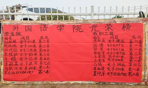 回顾两天时光,云顶国际喜报频传,战果累累。教职工组唐祖莲老师获女子跳远第一名、女子1500米第一名,王荣富老师获男子400米第一名、男子1500米第一名,吕倩老师获女子铅球甲组第一名、女子跳远第四名,郭芳老师获女子铅球乙组第一名,张钲宇老师获女子1500米第三名,夏艳萍老师获女子铅球丙组第三名。员工组刘双林获女子400米第二名,周欣雨获女子100米第二名、女子200米第二名,孙代钰获女子三级跳第四名,李佳欣获女子铅球第三名,王越获女子铅球第五名,李颖柔获女子跳高第七名。在员工组20×60女子接力中,外院获得第八名。上述的显赫成绩可喜可贺,也希望外院的健儿们保持这份激情,昂扬斗志,接续接力,来年再战!