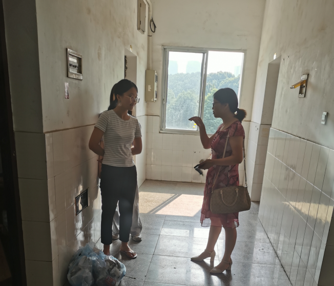831日上午9点,云顶国际经理杨永和、党总支书记肖江淑、党总支副书记罗望阳在公司辅导员老师的陪同下深入员工宿舍慰问刚搬入亲民1234栋的外院学子。