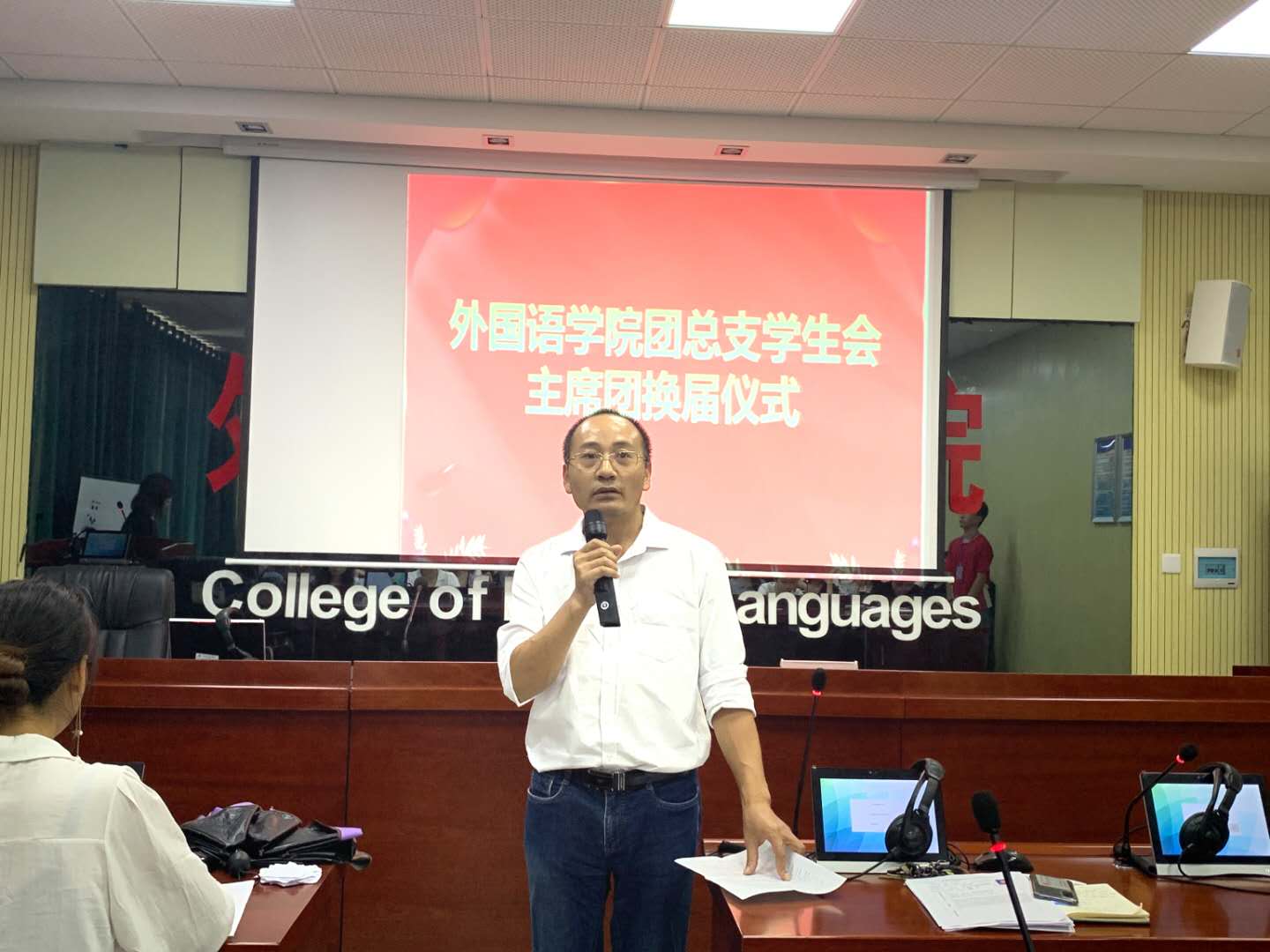 团学会干部换届竞选的评审团由新任主席团组成。各位干部候选人进行了现场演讲,他们介绍了自己的学习生活情况、以往工作经历和对后期工作的计划等,展现了自己的优势来证明自己有足够的能力完成接下来的任务。