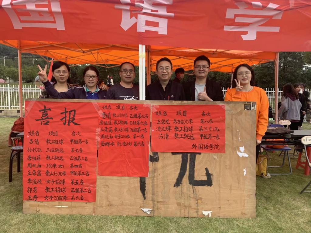 在历时两天的比赛中,外院喜报连连,战果累累。教职工组吕倩老师获女子铅球、跳远甲组双料第一名,王荣富老师获800米跑丙组第一名、1500米跑甲组第三名,唐祖莲老师获女子跳远乙组第三名、800米跑乙组第六名,郭芳老师获女子铅球乙组第二名,曹娟老师获女子800米跑乙组第三名,沈文辉老师获男子铅球丙组第三名,员工组周欣雨同学获女子200米跑第一名、100米跑第四名,孙代钰同学获三级跳远第七名,李佳欣同学获女子铅球第五名,王丹同学获女子3000米跑第六名,王碧龙获男子800米跑第八名以及团体20x60女子接力赛第七名。