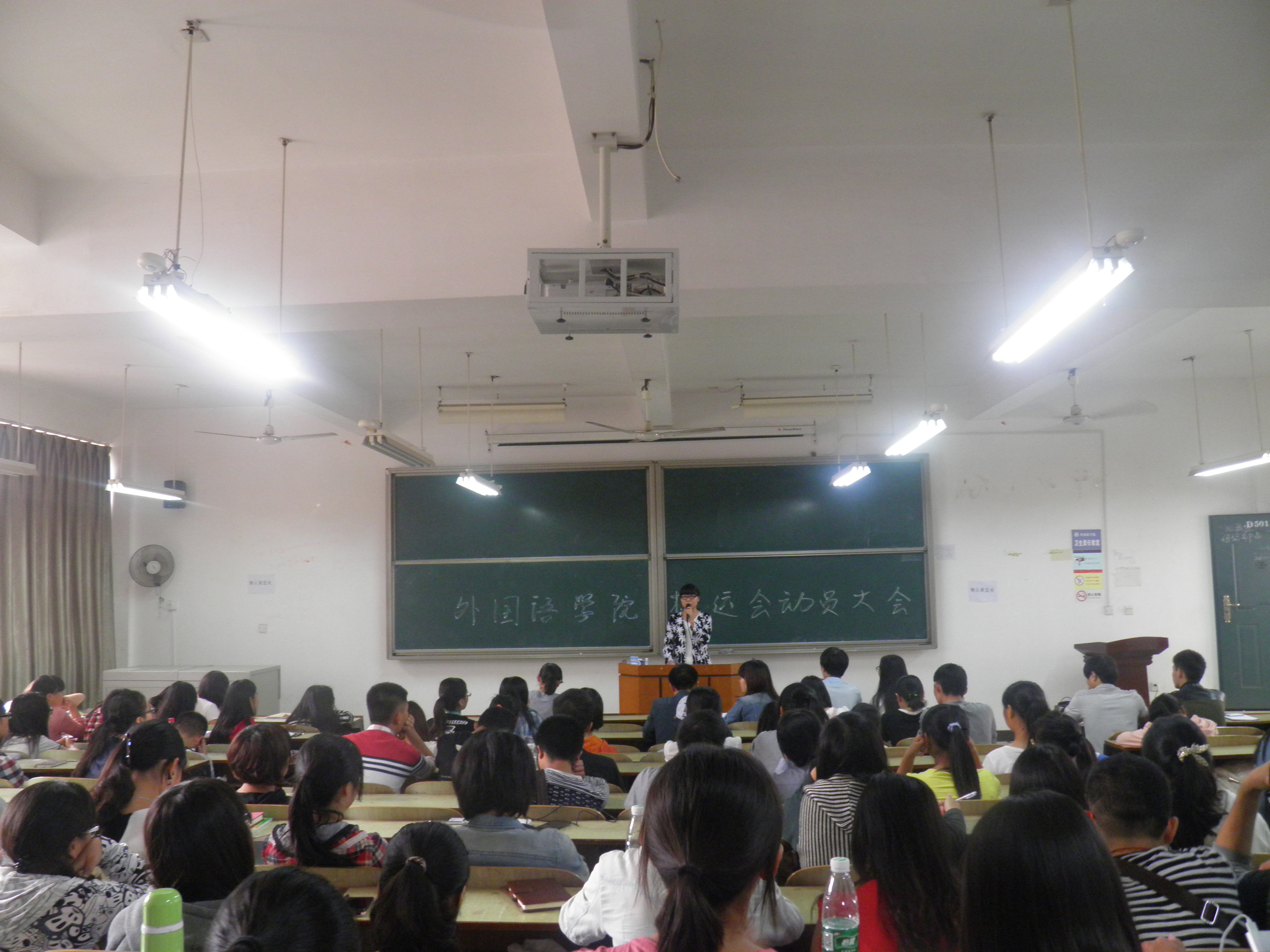 云顶国际2014年校运会动员大会于10月28日12点30分,在新校区主教学楼D501成功举行。此次大会由黎亚男同学主持,出席本次大会的有院团总支书记蒋莉老师,团学会全体成员和参赛的运动健儿们。