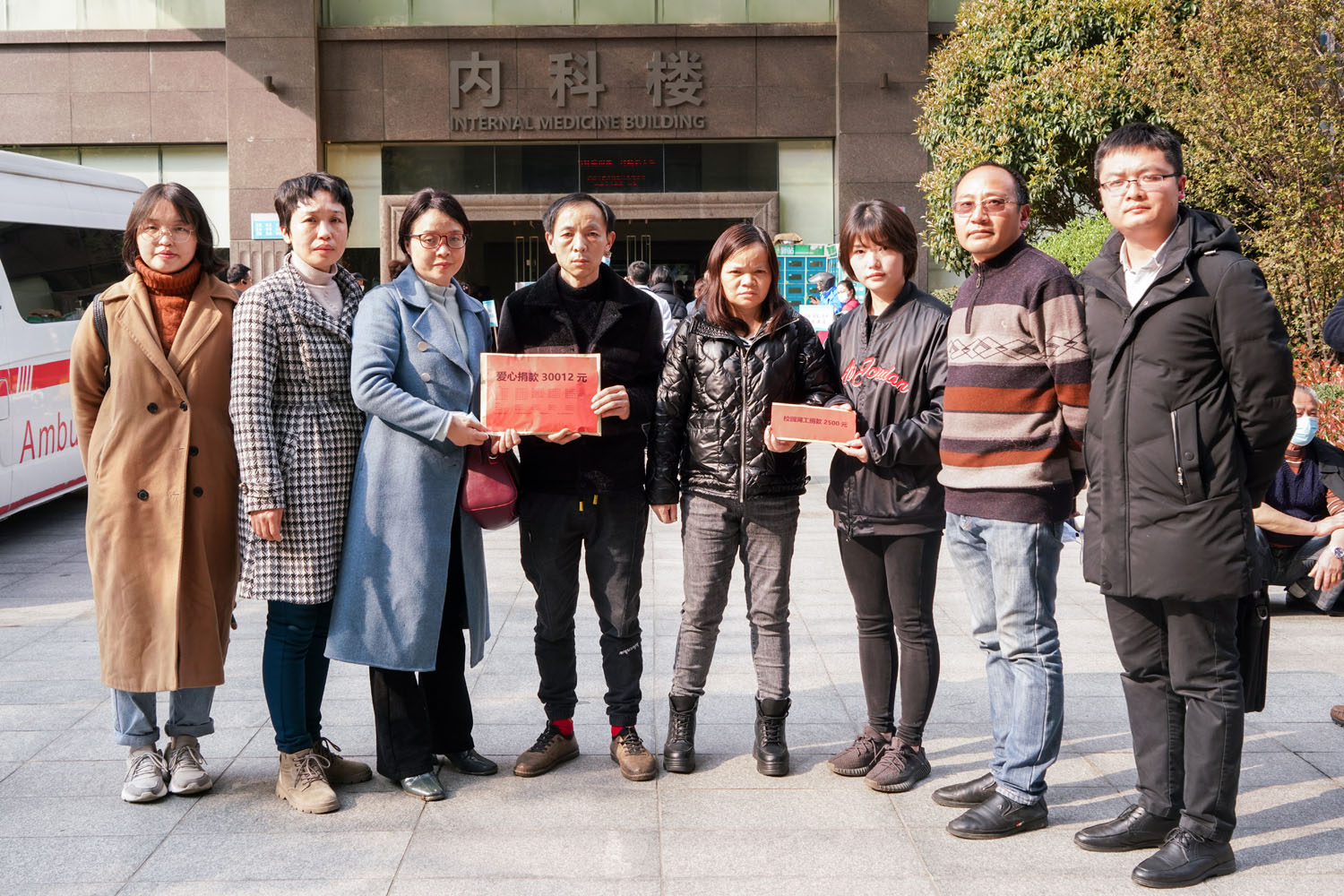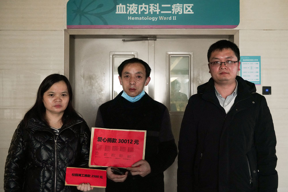 3月12日下午,党总支书记肖江淑带领员工办公室辅导员晏莉、彭虹、班主任梁彪、教师代表苏静等人前往湘雅医院进行探望,他们将前期除水滴筹、微信转账以外筹到的现金捐款32512元交到容珍父母手中。