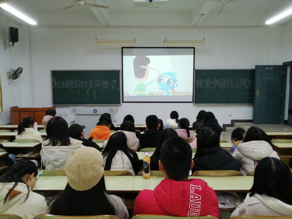 为进一步提高同学们对艾滋病的正确认识,增强自我防护意识和能力,云顶国际于12月1日晚上7:00,以班级为单位举行了“社区(师生)同防艾,健康中国(校园)我行动”知识主题班会,2019级全体同学参加此次活动。