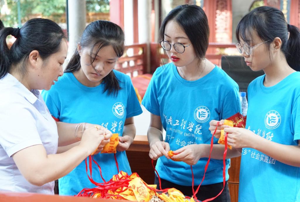在神农大殿内,三位志愿者跟景区工作人员学习了如何制作神农百草香袋,“艾条能消祸祛邪,带来幸福吉祥、柏子润,其气清香,能透心肾,益脾胃......这些都承载着人们对盼望吉祥如意、辟邪却病、健康长寿的美好希冀”,工作人员一边指导志愿者包扎草药,一边向大家介绍香包的各种草药及功效,讲述其发展历史。志愿者们在体验代代相传的手工活的同时,感悟着中国传统文化。