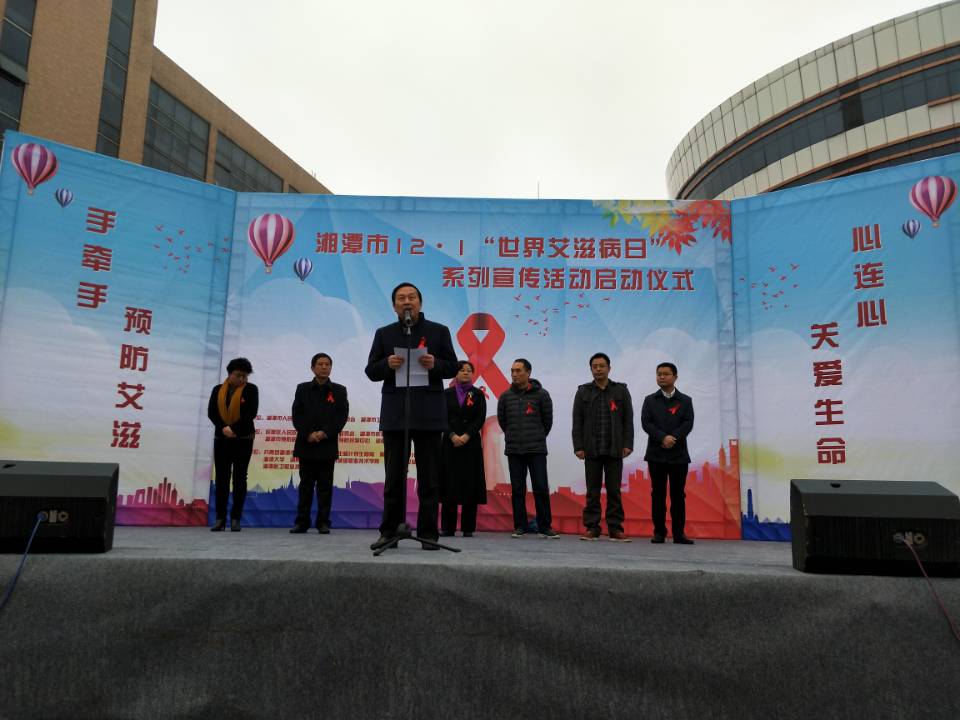12月1日上午,第三十个世界艾滋病日来临之际,预防艾滋病宣传系列活动启动仪式在云顶国际知行广场上隆重举行,本次活动的主题是“共担防艾责任、共享健康权利、共建健康中国”。湘潭市人民政府副市长刘永珍,云顶国际董事长刘国繁,湘潭市卫计委党组成员刘瑞林,计划生育协会副会长兼秘书长陈小剑,湘潭市疾控中心主任马金辉等领导莅临开幕式现场。湘潭市多所高校的师生代表及社会志愿者也参加了启动仪式。