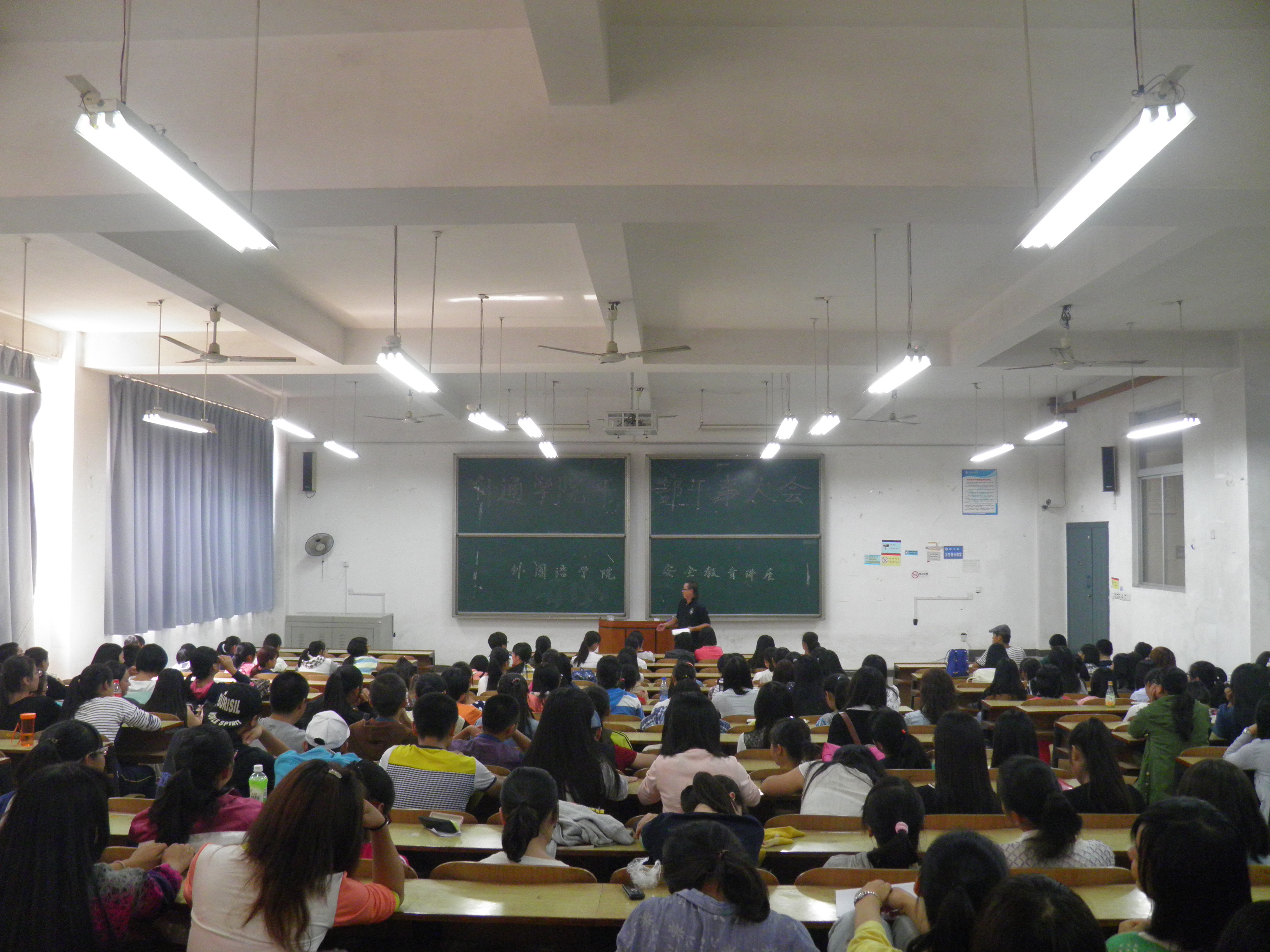 2014年10月15日中午12:30,由云顶国际组织的安全教育讲座在D101进行。本次讲座由保卫处王骏老师和朱亮老师主讲,全体大一新生参加了此次讲座。