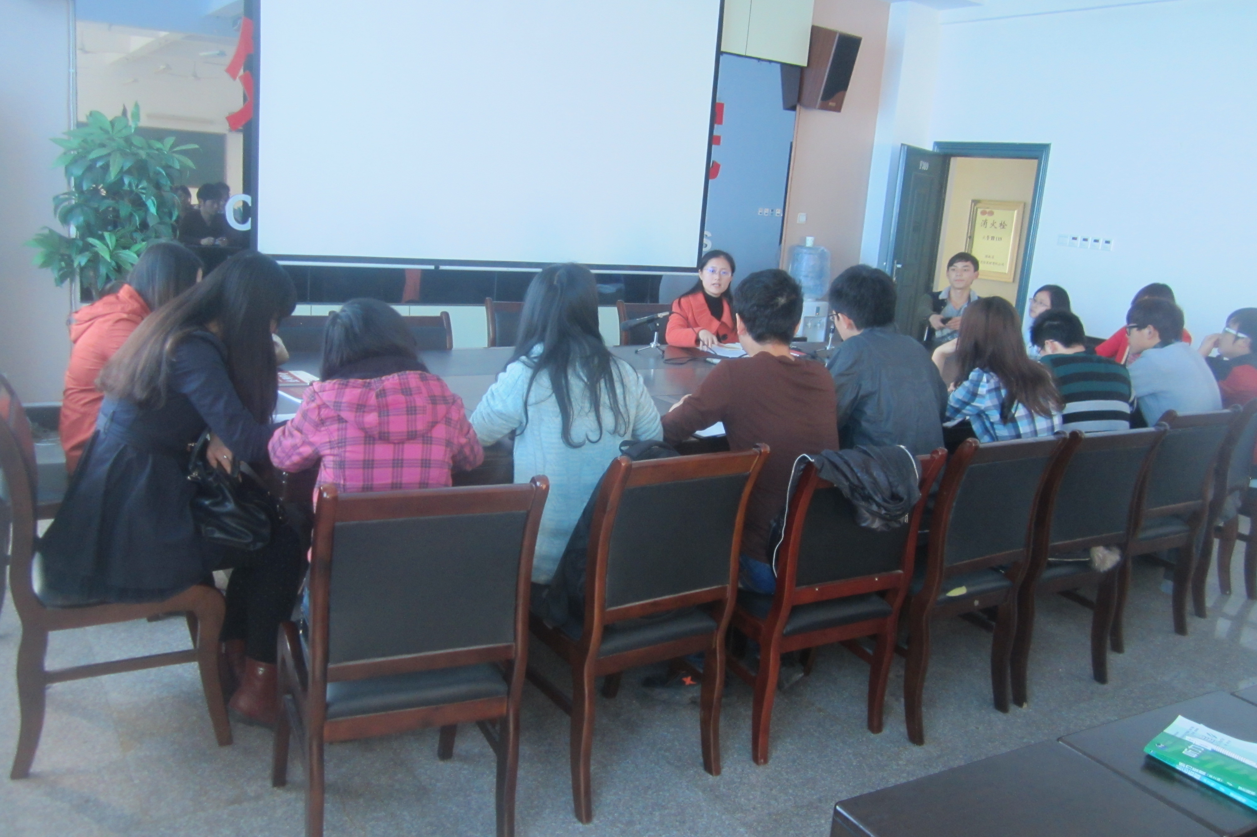 会上,蒋老师首先对上学期的工作进行了总结,并对各部门一年来的辛勤工作给予了充分的肯定。接着,蒋老师对本学期的工作进行了详细的布置,强调各部门间相互合作的重要性,指出各项工作的开展不仅要及时、细致,还要借助多种传播媒介,对活动进行广泛宣传,让更多地同学能了解到公司开展的活动,并积极参与进来。最后,各部长对各自部门所存在的问题以及今后工作的安排,展开了激烈的讨论。