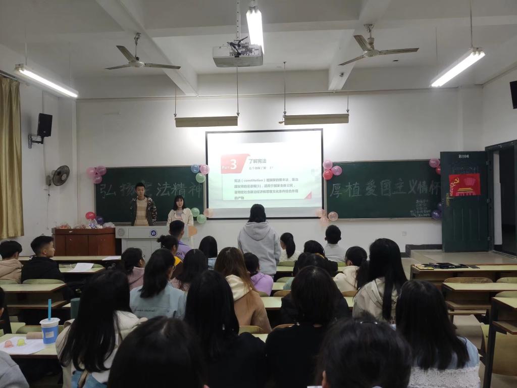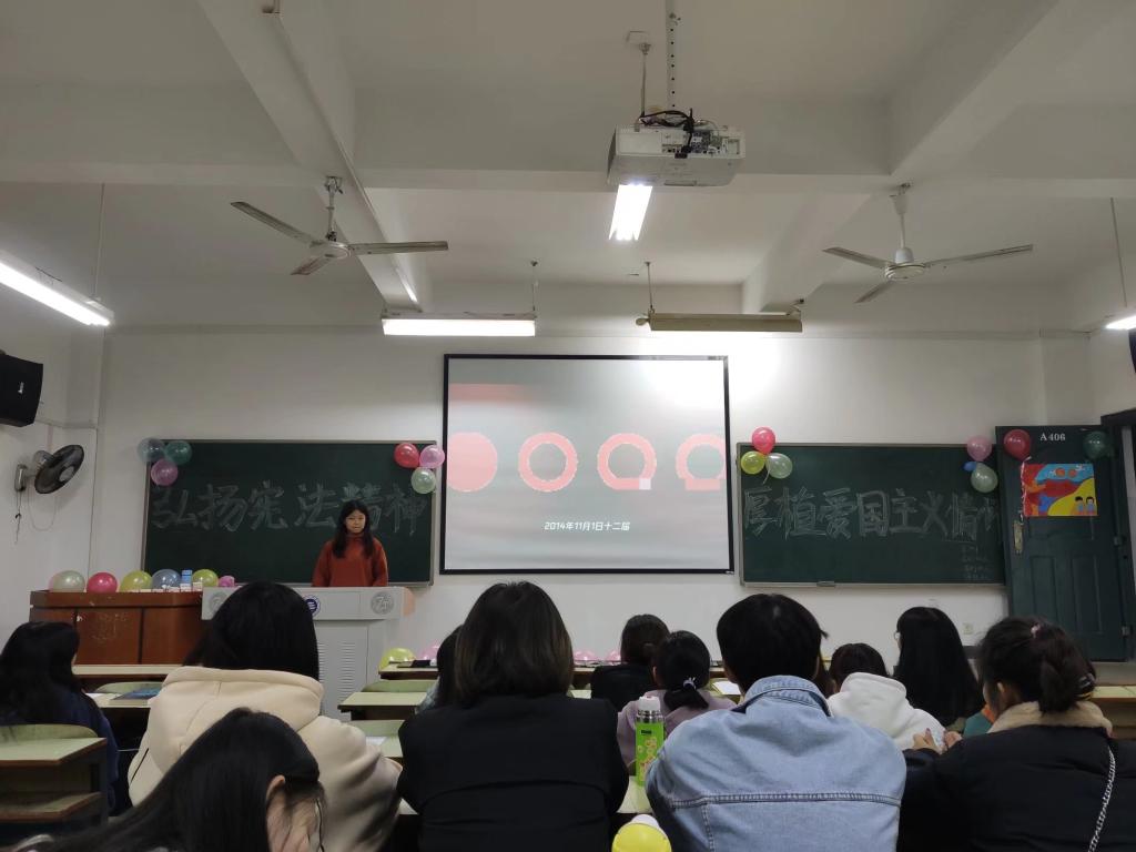 本次团日活动在校团委的领导下、各班团支部的响应和组织下取得了良好成效。各班借助多媒体对团日活动的环节进行简单介绍,接着同学们满怀深情重温入团誓词。并开展趣味竞答,继而展开热烈讨论,在交流中进一步感受宪法的权威。活动中,同学们踊跃发言,阐述了自身对于爱国主义情怀的理解,分享了个人对宪法的认识与理解。
