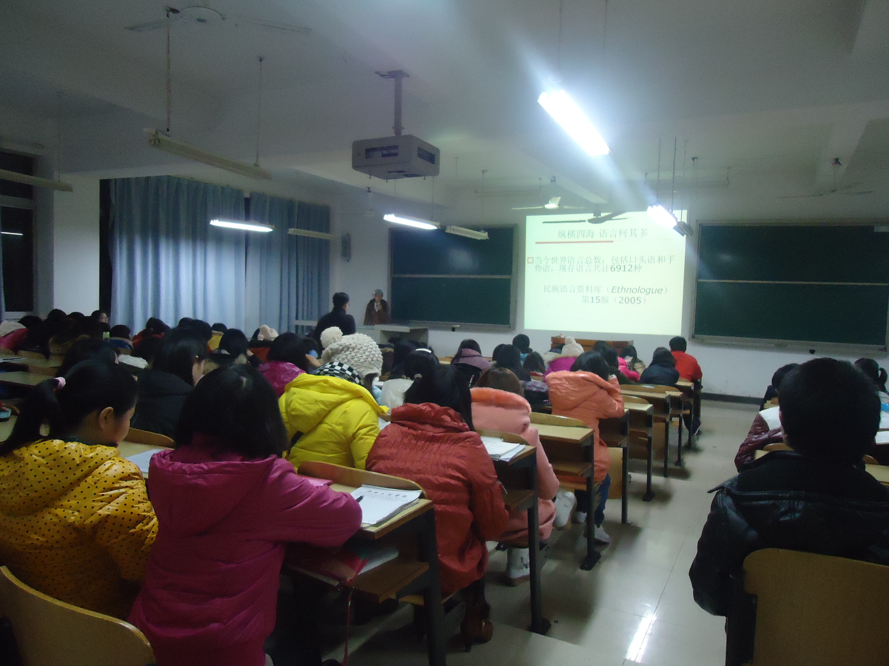 2012年12月18日晚7点,云顶国际两位博士:沈文辉和毛帅梅在教学楼D-302为英语专业三四年级的员工举办了专题学术讲座。