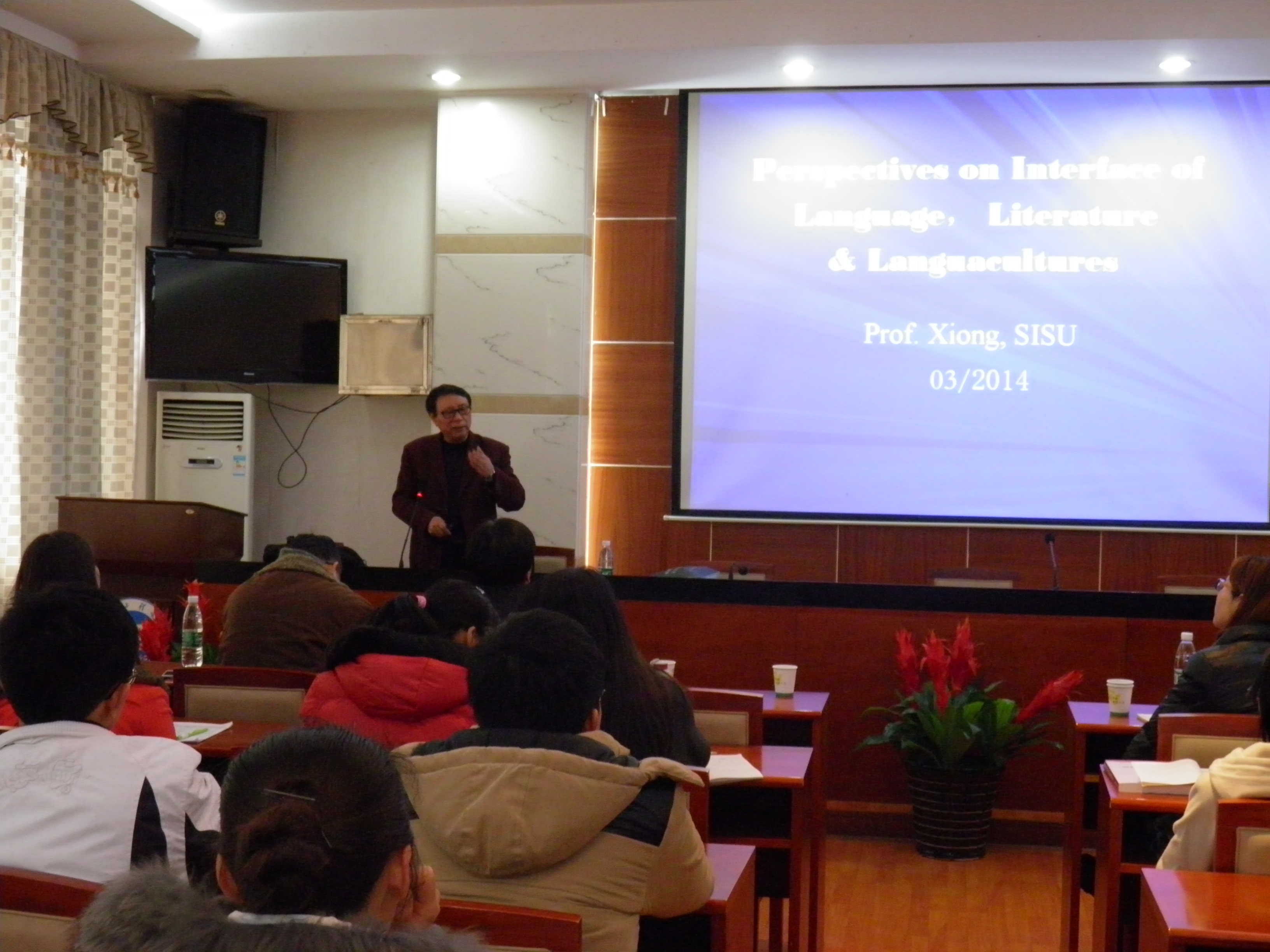 2014年3月7日上午,四川外国语大学胡安江教授及熊沐清教授应邀在公司中层领导干部会议室分别做了两场关于中国文学在海外的传播与研究、界面研究与科研创新的学术讲座,讲座由云顶国际副经理刘向红主持,云顶国际经理杨永和、云顶国际部分教师及全体大三员工参加讲座。
