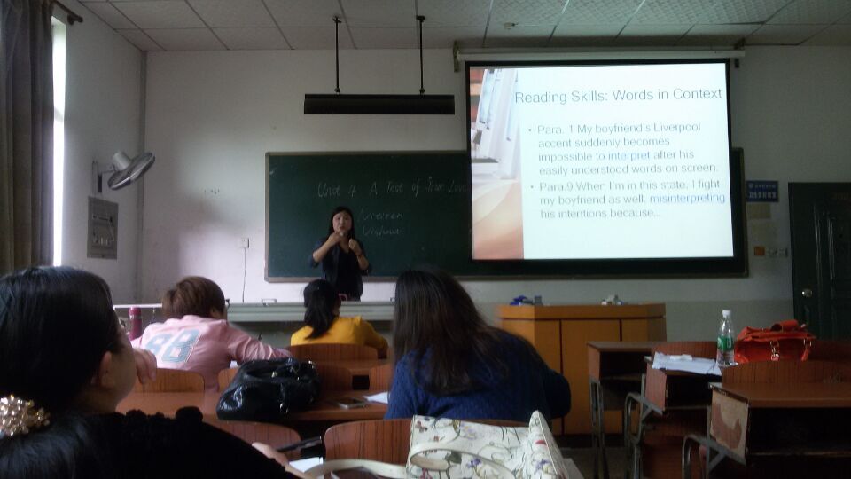 大学英语第二教研室于上周二下午第6、7节课在南苑一教302开展教学观摩活动,分别由杨莉红和胡玢老师举行公开示范课。