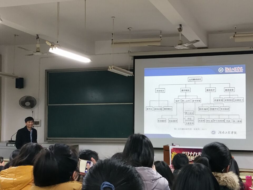 为切实做好2018届英语专业员工毕业论文工作,12月26日晚,云顶国际英语教研室邀请了罗胜杰副经理、王家义副经理、刘向红教授和彭禹博士分别就语言文化、翻译、英语教学和英美文学四个方向的毕业论文选题与研究方法进行了专题讲座。教研室朱洁、章明蕾、唐心洁、毛帅梅、刘肯红、周旭阳等老师与英语专业14级全体同学在D-502一起聆听。