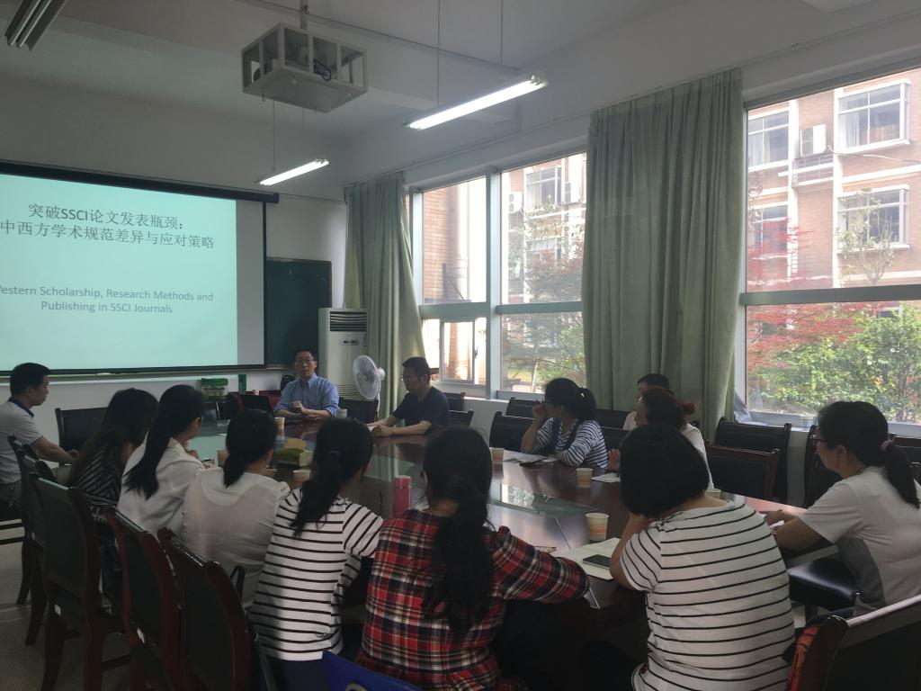 强调,掌握好的研究方法对学术论文写作至关重要。他指出,论文撰写通常有两种方式:其一为哲学思辨型;其二为实证研究型。哲学思辨型研究对学术功底和逻辑思维要求较高,对一般老师和研究者来说难度也较大。而实证研究具有相对固定的模式,研究中只要掌握了几个关键环节如问题的提出、通过具体研究方法回答问题和对研究的结果与发现的分析与阐述就能形成比较好的研究。他鼓励广大教师多开展实证性研究。李教授结合翻译技术与翻译教学的实例,详细讲解了开展实证研究的具体方法,并在此基础上介绍了论文研究思路和基本框架。同时,李教授还介绍了澳门大学翻译传译认知研究中心目前的研究重点,即通过实证-实验研究路径,关注译者的大脑,俗称黑匣子,是如何运作的,力图弄清楚译者在从事翻译活动时大脑的思维活动以及翻译的认知神经机制,希望可以回答我们的大脑是如何准确有效地按照一定的方式和目的,采用适当的翻译方法和策略,将原文转换为译文的。作为公司特聘教授,他真诚地鼓励公司教师以团队协作的形式既形成合力又发挥各自专长以更好地开展学术研究。