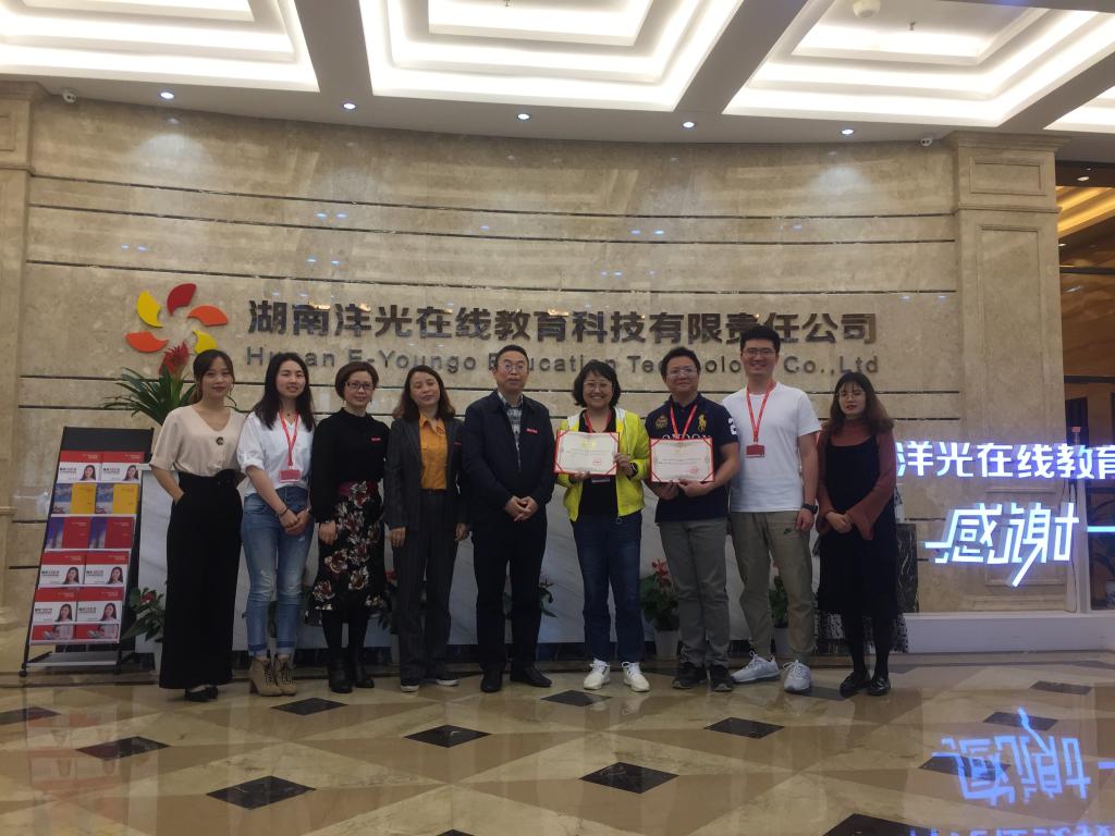 5月9日,云顶国际经理杨永和、总支书记肖江淑、副书记黄琴一行3人,来到湖南洋光在线教育科技有限责任公司,走访调研实习基地,并隆重举行湖南省普通高校校企合作创新创业教育基地“创新创业导师”与“企业导师”的颁发仪式。湖南洋光在线教育科技有限责任公司董事长刘红平、副总裁刘柳等热情接待了杨永和一行,双方进行了深入交流。