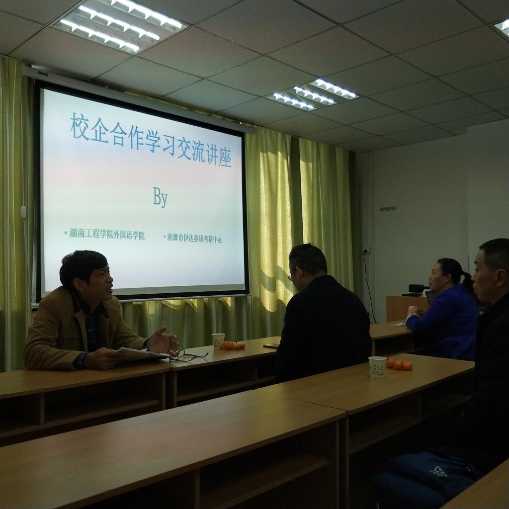 2019年11月22日,公司领导杨永和、罗胜杰率领12位专业教师和青年教师,来到湘潭市伊达英语考培中心,开展校企合作与专业培训工作,受到了伊达英语考培中心负责人司新先先生和剑桥英语考试培训总负责人朱曼莉教授等人的热烈欢迎。