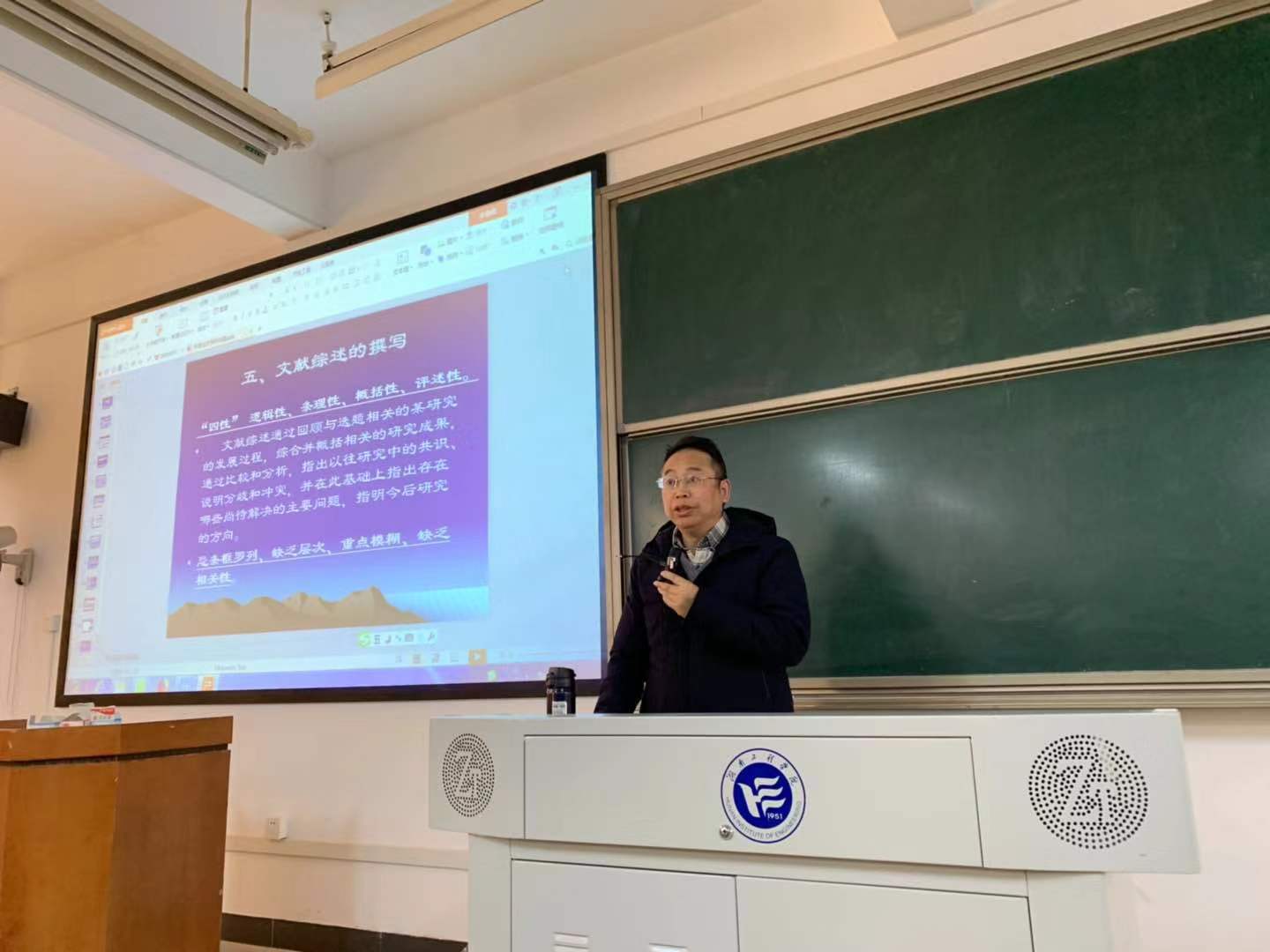 吴斐首先讲述了学年论文、毕业论文、毕业实习的相关指导老师安排和学年论文的相关要求及提交时间,然后介绍了毕业实习计划的相关内容,明确了毕业实习的性质、目的、基本任务、内容、方式、相关组织和基本要求,他还详细讲述了撰写毕业实习报告的相关细节,希望同学们在实习期间,虚心求教、礼貌待人、注意观察、广泛收集资料,做到“四勤”,即:勤看、勤听、勤问、勤记录,严格遵守所在实习单位的规章制度,认真对待和完成好实习单位交给的各项工作。