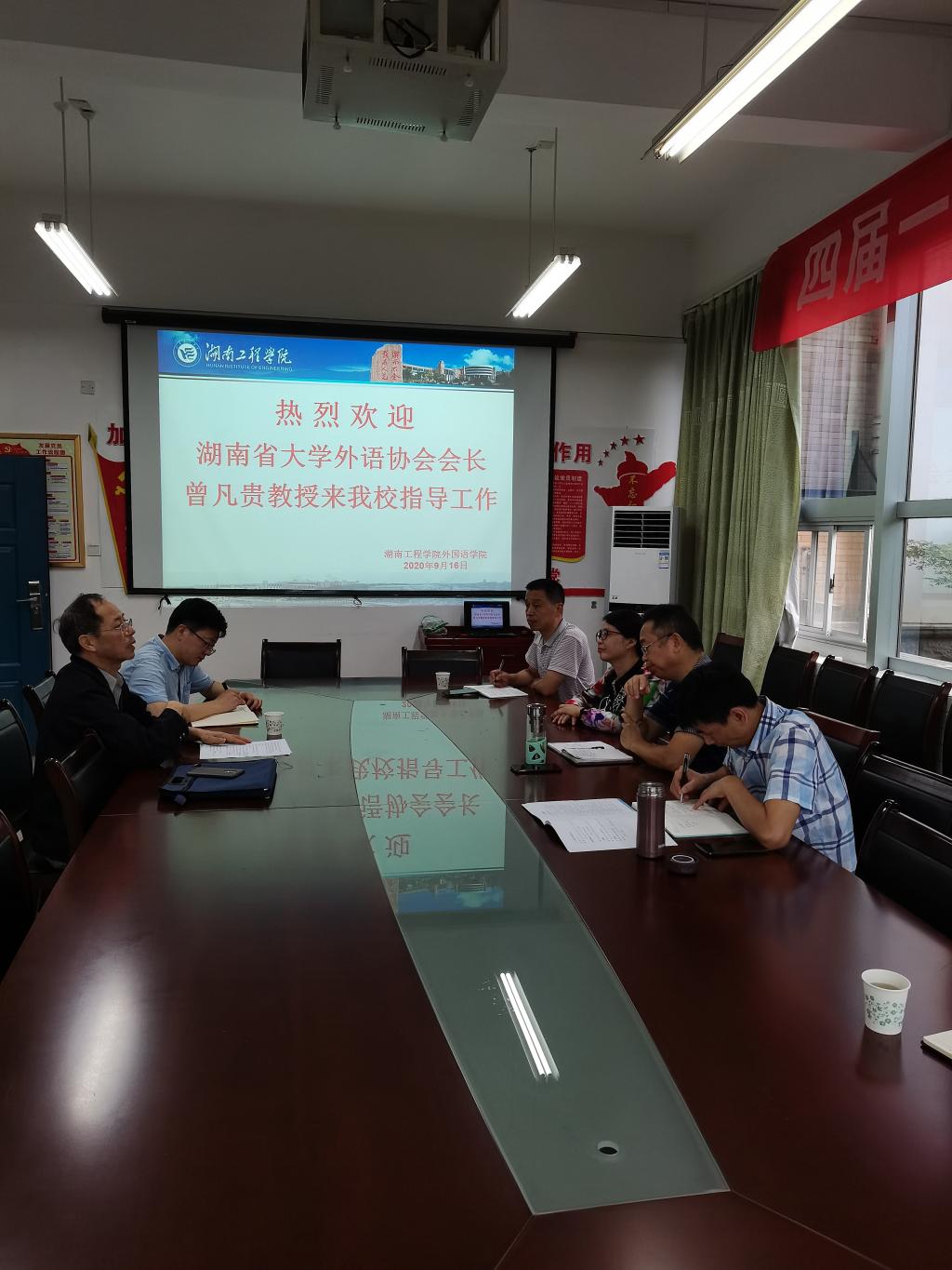 2020年湖南省老员工英语演讲比赛将于10月下旬在公司举行,为确保此次大赛的圆满举办,湖南省大学外语专业委员会会长曾凡贵教授于2020年9月16日上午专程来到公司,就英语演讲比赛作主旨报告,并对省级学科竞赛相关工作进行指导。公司副董事长李军林教授与曾凡贵教授进行了亲切友好的会谈,创新创业公司经理刘洞波教授和公司领导班子成员参与会议。