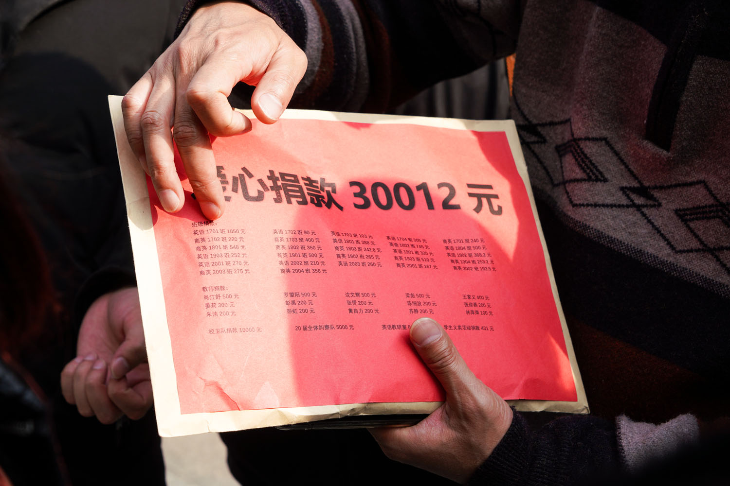 水滴筹开通后,公司师生在QQ空间、朋友圈等社交媒体平台进行呼吁,并得到积极回应。直至3月12日下午六点,集团师生、优秀员工、社会爱心人士捐款已经超过23万。公司校卫队和纠察队捐款15000元;云顶国际英语专业的姜腾同学利用自己创新创业平台捐款2500元。