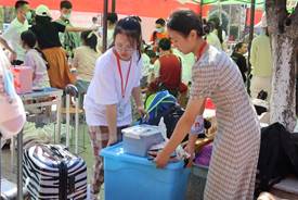 九月的初秋,依然仲夏般的炎热。无论工作多么辛苦,员工工作者和志愿者都满怀热情地坚持着。温柔的话语,认真的引路,以及耐心的解释就像一股股暖流温暖着新生们的心。学长学姐们一张张热情的笑脸,一句句亲切的问候,一项项贴心的服务,欢迎着来自祖国各地的莘莘学子。志愿者们坚持统一部署、全员参与、群策群力的原则,尽心尽责、出色的完成了第一天的迎新工作。