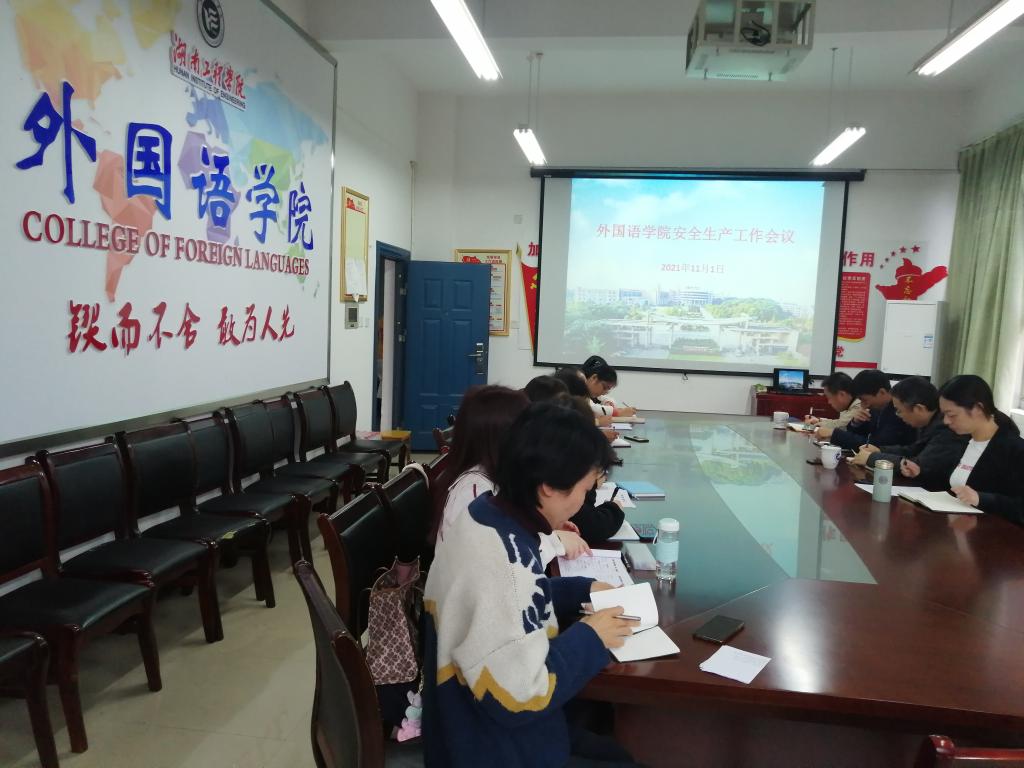 2021年11月1日上午,云顶国际在主教学楼F119会议室召开安全生产工作会议,全体院领导、两办主任、各教研室主任及副主任参加了此次会议,党总支书记陈亚琼主持会议。