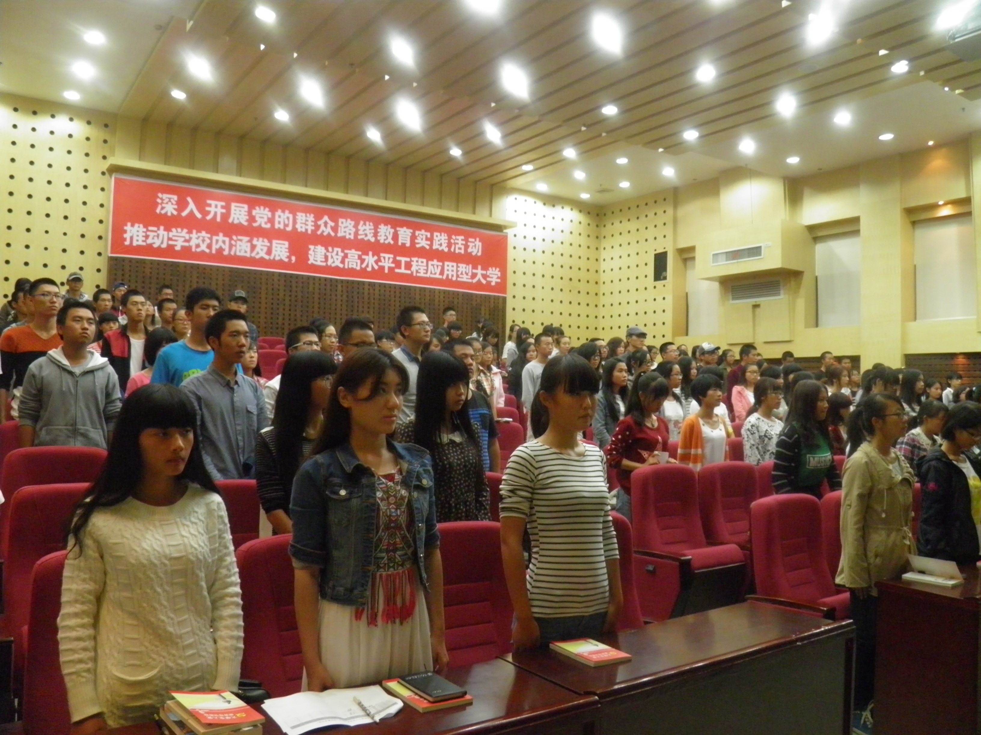 典礼在雄壮的国际歌中拉开帷幕,肖江淑致辞,她为全体学员讲述了党课培训的重要性——培养学员的责任感、使命感和崇高感,增强对党的正确认识。并对学员们提出五点希望。随后,肖彬强调了党课记律。商务英语1403班邓辉舞同学代表学员发言,祝愿学员们“学有所成,学有所得,学有所悟”。在场同学认真聆听,态度端正。