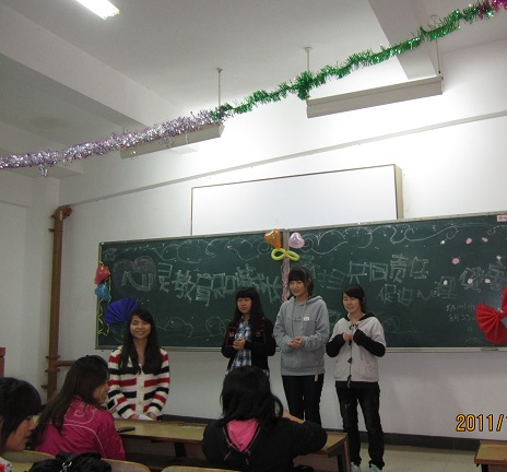 活动过程中,同学们积极参与,并针对主题进行了较为深刻的探讨,场内气氛活跃;歌曲、乐器、舞蹈等表演层出不穷,尤其是一些趣味性的小游戏,把活动气氛推向了高潮。